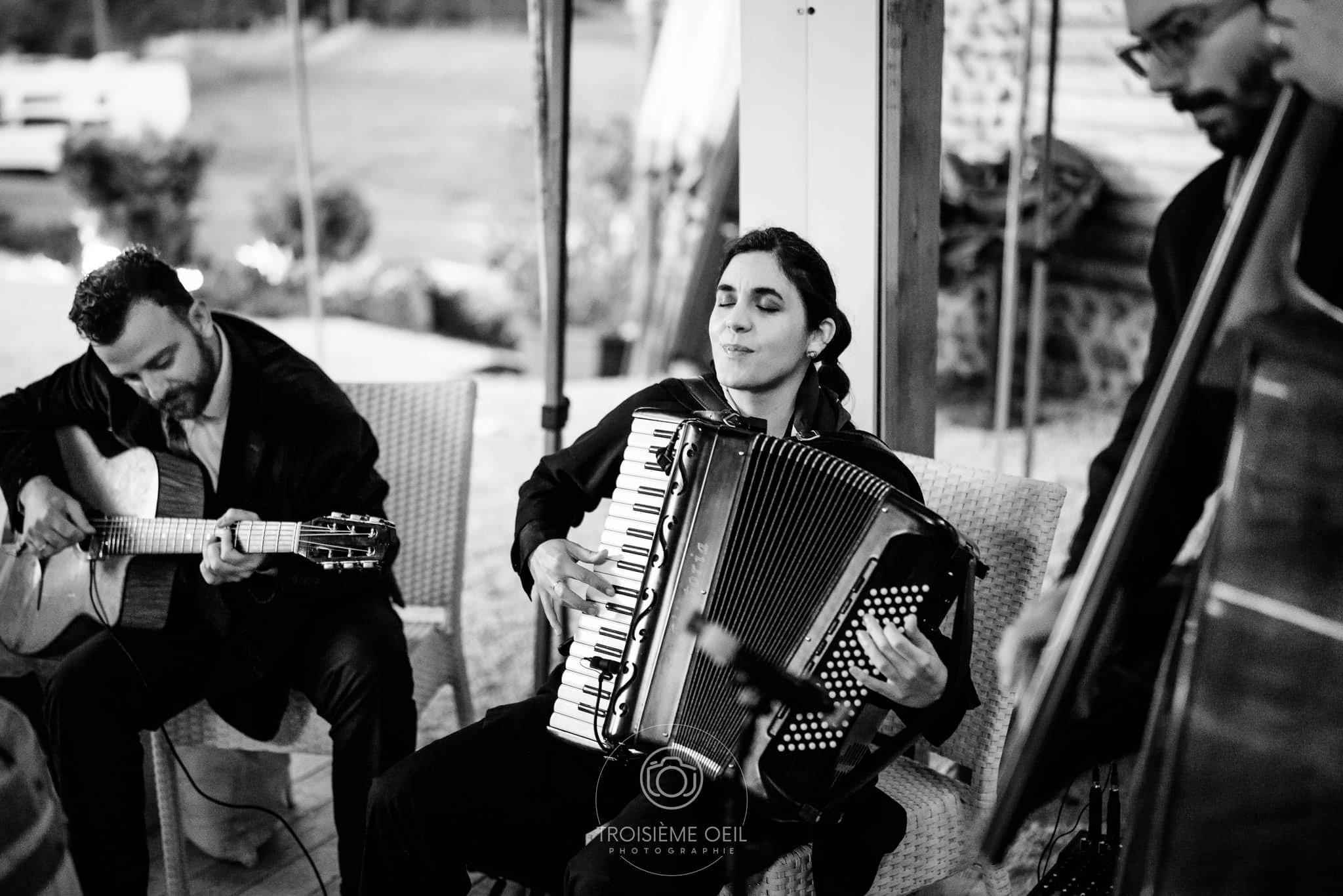 The trio composition of Manouchedrome provides a traditional manouche sound, with Demetrio Psallidas as founder and composer. Their unique arrangements evoke memories for listeners with a touch of swing and the warmth of the wooden manouche instruments.